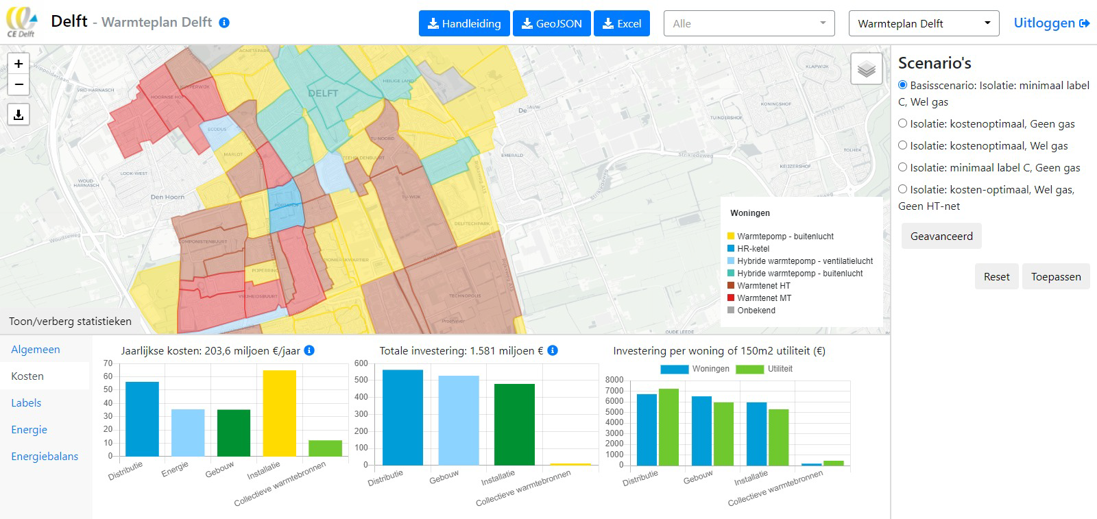 CE Delft adviseert over de ontwikkeling van de warmtevoorziening. Gemeenten, regio’s en provincies kunnen dit gebruiken voor hun warmteplannen en als onderdeel van de omgevingsvisie. Voor netbeheerders en energie- bedrijven geeft het inzicht in de ontwikkeling van het energieverbruik en daarmee ook de ontwikkelingen van het benodigde energienetwerk. Het CEGOIA-model is in beheer bij CE Delft, maar voor experts die zelf berekeningen willen uitvoeren is er nu ook een webtool beschikbaar. Hiermee kan de gebruiker zelf verschillende scenario’s doorrekenen om inzicht te krijgen in de ontwikkeling van de warmtevoorziening in haar gemeente of regio.